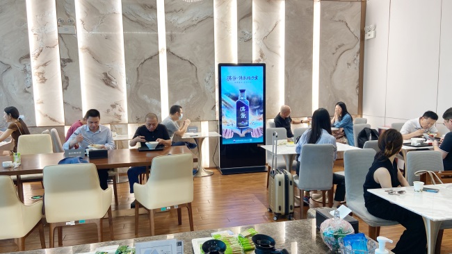 媒體位置:場(chǎng)外要客區(qū)域接待廳、通廊、餐飲區(qū)附近、專(zhuān)屬安檢附近;場(chǎng)內(nèi)貴賓區(qū)域接待臺(tái)附近、頭等艙、商務(wù)艙休息室接待臺(tái)附近、餐飲區(qū)、休閑區(qū)等
