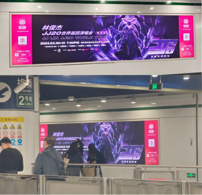 本次全仔帶來的案例來自林俊杰世界巡回演唱會(huì)福州站,本次演唱會(huì)宣傳覆蓋福州地鐵2號(hào)線列車廣告,與2號(hào)線、5號(hào)線換乘站金山地鐵站燈箱廣告,覆蓋地鐵沿線周邊街坊、游客以及日常通勤的上班族、學(xué)生群體,成為歌迷朋友們的熱門打卡點(diǎn)。