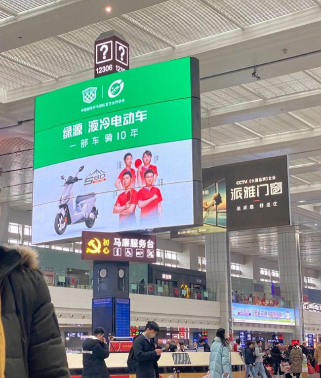 媒體位置:候車大廳靠近南廣場(chǎng)服務(wù)臺(tái)上方