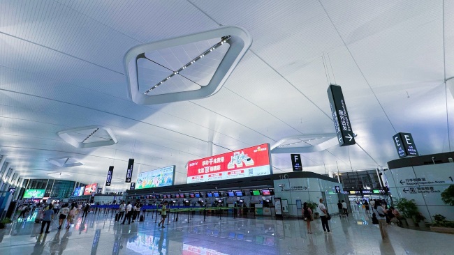 寧波機(jī)場(chǎng)T2出發(fā)辦票大廳值機(jī)島上方大型燈箱廣告