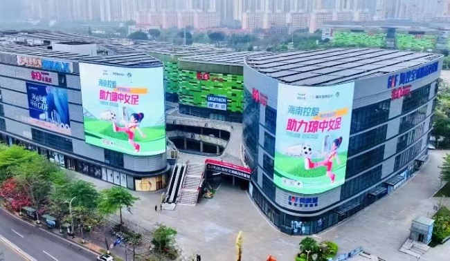 ???/b>瓊山區(qū)日月廣場(chǎng)GDF免稅城戶外墻面LED大屏廣告