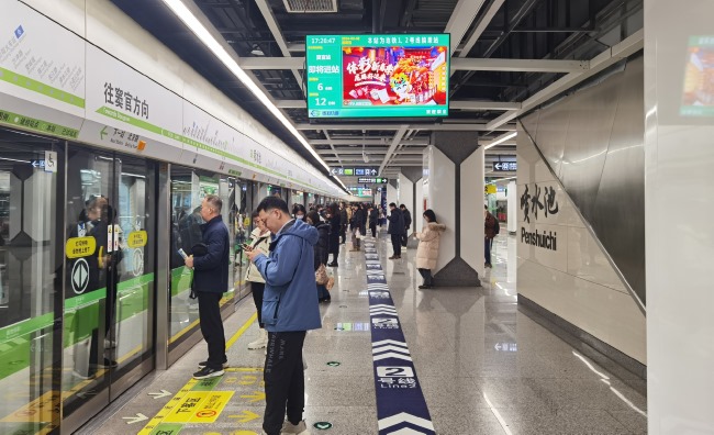 車廂內(nèi)冠名——到站 (單向):貴州銀行(8個(gè)字內(nèi))提醒您,竇官站到了,右側(cè)車門將會(huì)打開,下車時(shí)請(qǐng)注意列車與站臺(tái)之間的空隙。