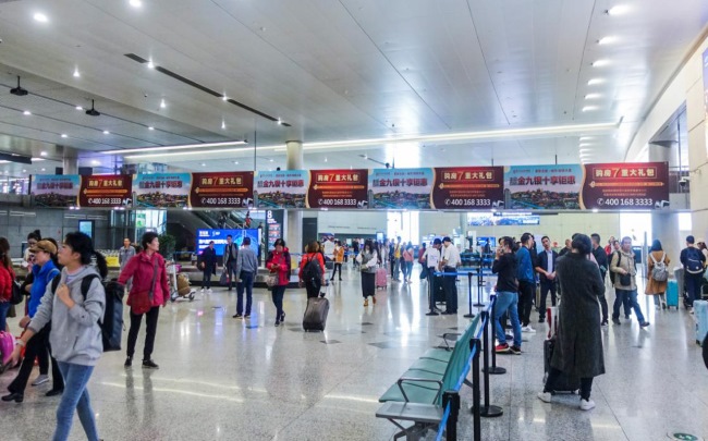 南京祿口機(jī)場(chǎng)國(guó)內(nèi)到達(dá)空中長(zhǎng)廊貼紙廣告牌,南京機(jī)場(chǎng)廣告價(jià)格收費(fèi)