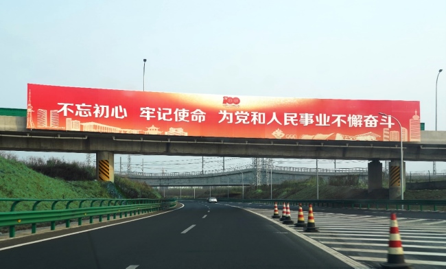 青島膠東機(jī)場高速跨線橋大牌廣告