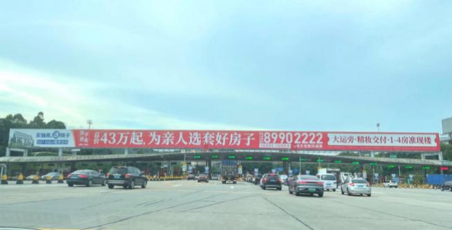 深圳水官高速龍崗收費(fèi)站廣告大牌,深圳高速收費(fèi)站頂大牌廣告價(jià)格