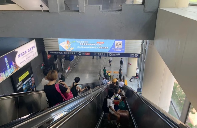 深圳福田口岸一樓大廳入境扶梯旁燈箱廣告