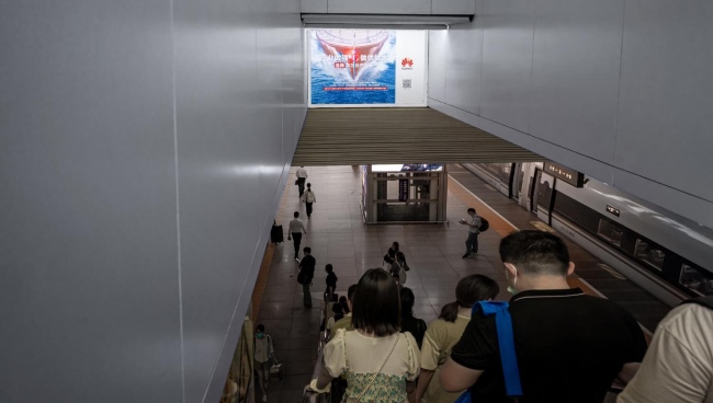 北京南站出發(fā)層進站站臺楣頭看板廣告