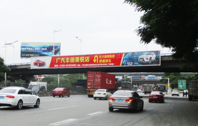 東莞市大嶺山鎮(zhèn)石大路與莞長路交匯處三面翻天橋大牌廣告