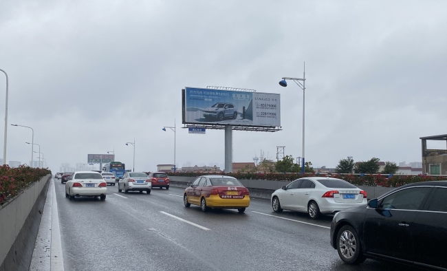 佛山南海謝疊大橋(往廣州方向)高桿立柱大牌廣告立柱高度18米,廣告牌雙面展示面積達(dá)216平方米,超大尺寸與高度優(yōu)勢。可視距離超500米,車輛緩行(早晚高峰擁堵)時段單次注視時長8-12秒,品牌記憶度較普通高桿