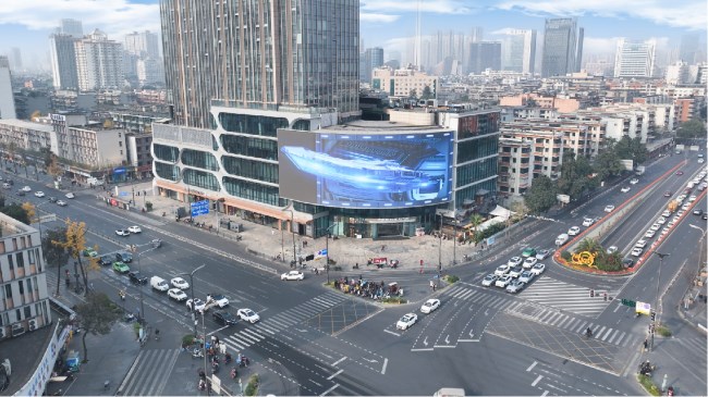 成都未來中心戶外LED大屏廣告位于蜀都大道與一環(huán)路十字路口未來中心樓體外立面以及紅綠燈上方,覆蓋多方向車道及人行天橋,車流緩行(紅燈等待90秒)與行人駐留(日均停留5-8分鐘)形成強(qiáng)制觸達(dá),品牌信息接收深度倍增。橫長近50米,高度超18米的超清曲面大屏總面積達(dá)928㎡,可呈現(xiàn)裸眼3D廣告畫面,采用多視點成像技術(shù),無需輔助設(shè)備即可呈現(xiàn)立體破屏效果,可視距離超500米,視覺沖擊力較傳統(tǒng)LED提升200%;