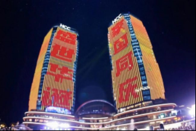 ??谌A彩HCC雙塔燈光秀廣告投放,??跇求w地標(biāo)大屏廣告價(jià)格