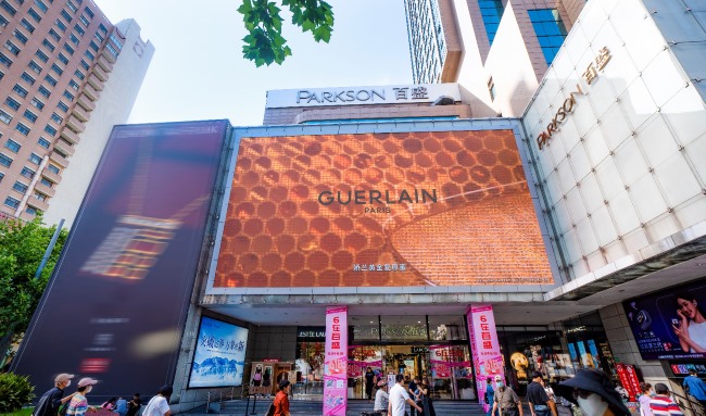 上海淮海中路百盛購物中心正門上方LED大屏廣告橫長18.米高度10.5米,總面積達196㎡,在30米視距下占據(jù)70°水平視野,大屏正對陜西南路和淮海中路紅綠燈路口,離地超8米設置實現(xiàn)俯沖性視域覆蓋,封閉式櫥窗購物場景催生街道信息渴求,廣告主動接收率提升400%。12小時亮屏完整覆蓋早10點理性期→晚10點情感期消費決策曲線,百萬級人流每日形成的朝圣式消費場域,高端品牌認知轉化效率提升60%。