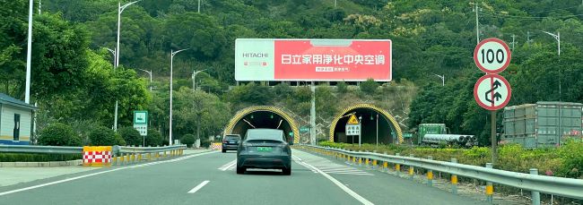 泉州至廈門泉廈交界山頭隧道頂廈門側(cè)B道隧道口上方大牌廣告